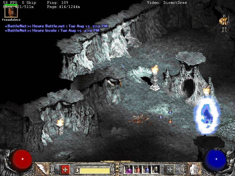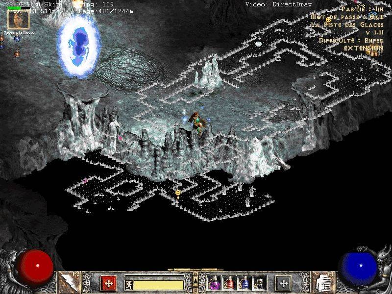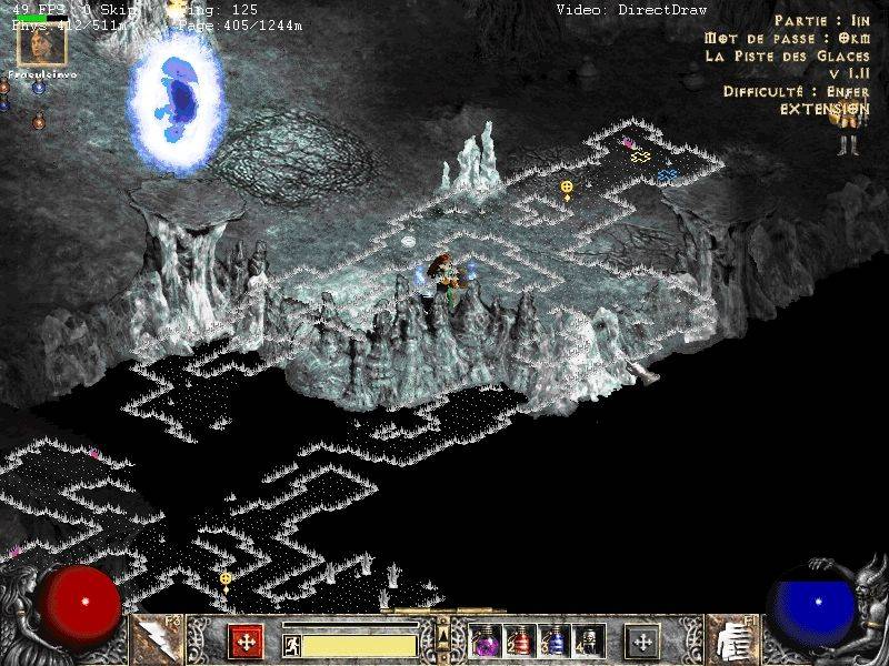Wird die Karte im Spielverlauf generiert, so erhält in diesem Falle die ds1 Datei, die den Wegpunkt beinhaltet, eine ungültige Position. So ist es zum Beispiel nicht erlaubt, daß Portierungspunkte zu anderen Karten zu dicht aufeinander liegen. In den beiden ersten Bildern kann man anhand der Automap Funktion erkennen, daß an keiner der für einen Wegpunkt prominenten Stellen an den Kartenrändern ein Wegpunkt generiert wurde. Als Folge davon kann man den - nicht vorhandenen - Wegpunkt nicht benutzen, um aus der Karte herauszukommen. Falls der Spielcharakter den Wegpunkt dieser Karte bereits in einem früheren Spiel aktiviert hatte, so kann die Karte von jedem anderen Wegpunkt aus betreten werden. Der Spielcharakter landet dann an der nächstgültigen Position zu dem Punkt, wo der Wegpunkt hätte generiert werden sollen.
